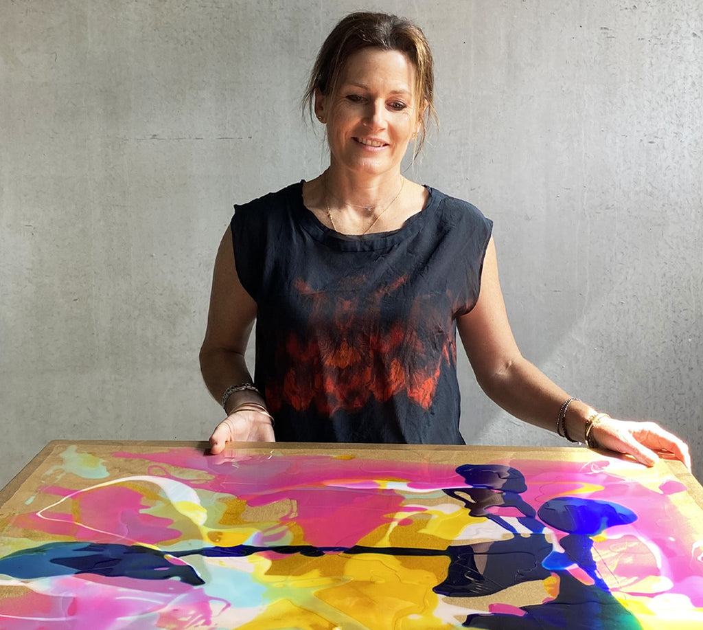 Rachel Rush is an Auckland-based contemporary artist whose practice spans two collections: Rachel Rush Contemporary and RUSH. Working with resin, acrylics, and stains, she creates layered works that explore colour, depth, and vibrancy.