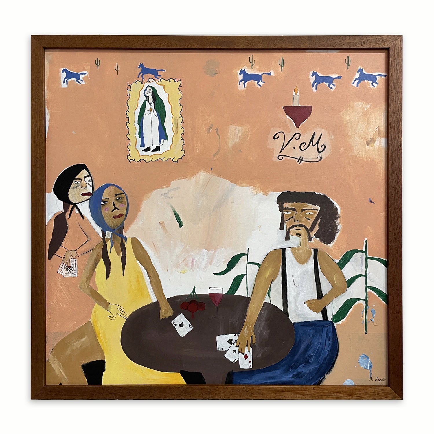 This series titled ‘Villa Mexicana’ captures the quintessential Mexican charm of my stay at the hotel, blending colourful memories with folklore. The painting’s vibrant colours and stylised figures evoke a sense of warmth and nostalgia. Whether its locals lounging beneath the Central American sun, playing a round of poker, or riding horseback along the beach, this series tries to capture the spirit of the place and the people that inhabit it."