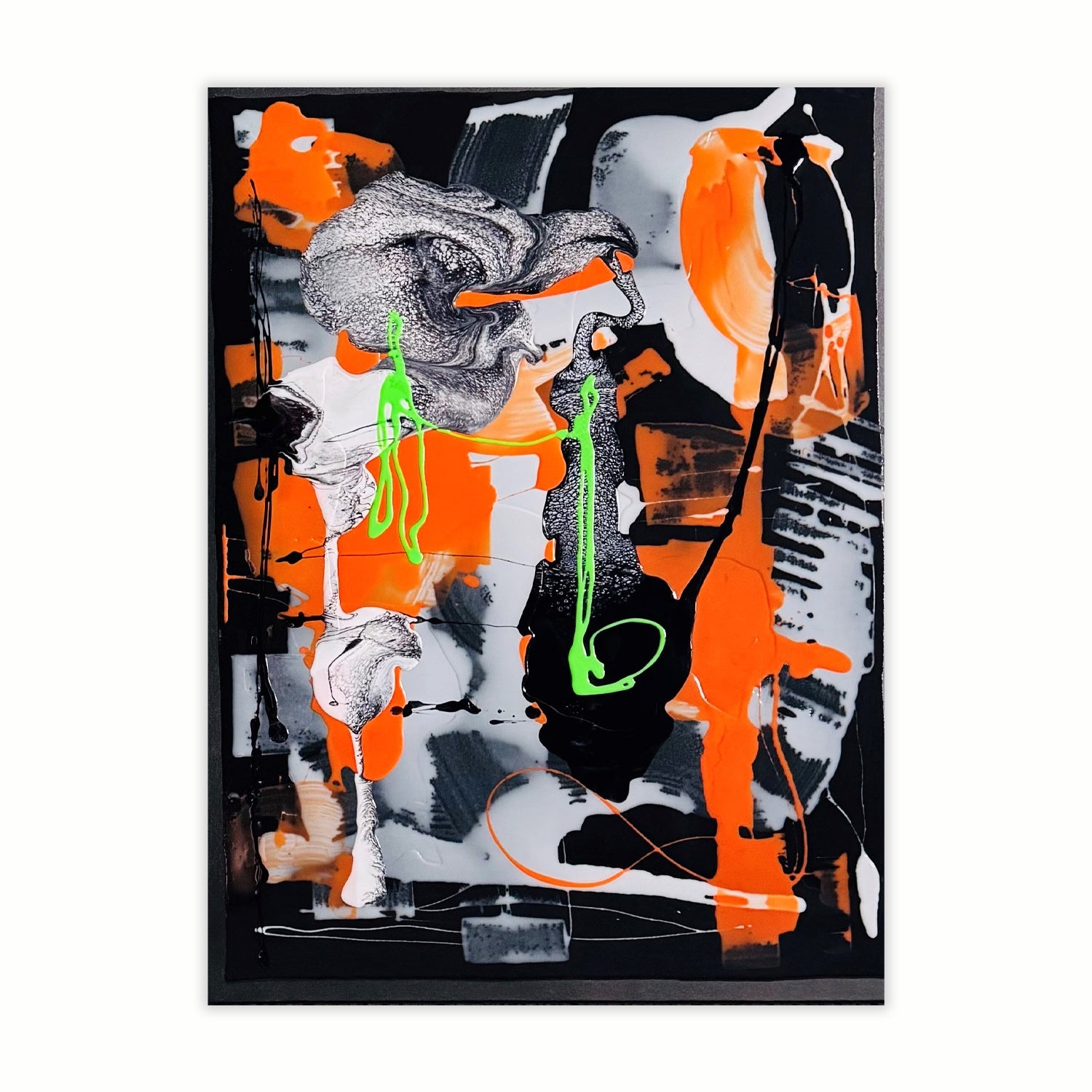 Part of Through the Looking Glass, Rachel has spent years finding her voice, ultimately leading to her colourful RUSH graffiti work, and contemporary Rachel Rush abstract, resin works. Although working with resin can be challenging she loves the depth of colour and shadow that can be achieved and works methodically on a small section every day, taking weeks to complete each piece.