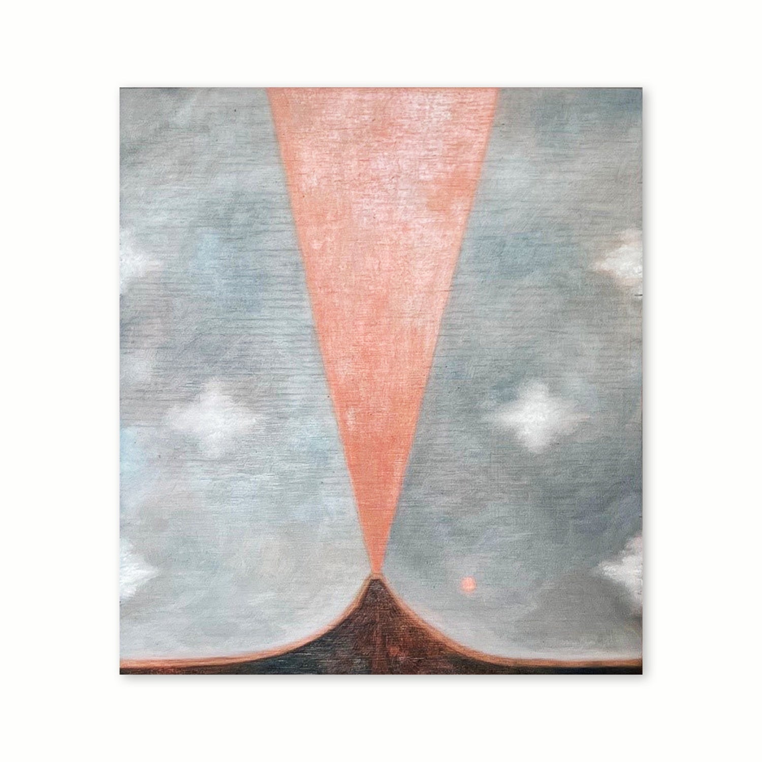 This new suite of five small works on plywood showcases the artist’s continued exploration of the unseen forces that shape our connection to the natural world. Two are imagined “spirit landscapes”, evoking primordial terrains of hills and volcanoes, reflecting on the deep relationship between body and land.